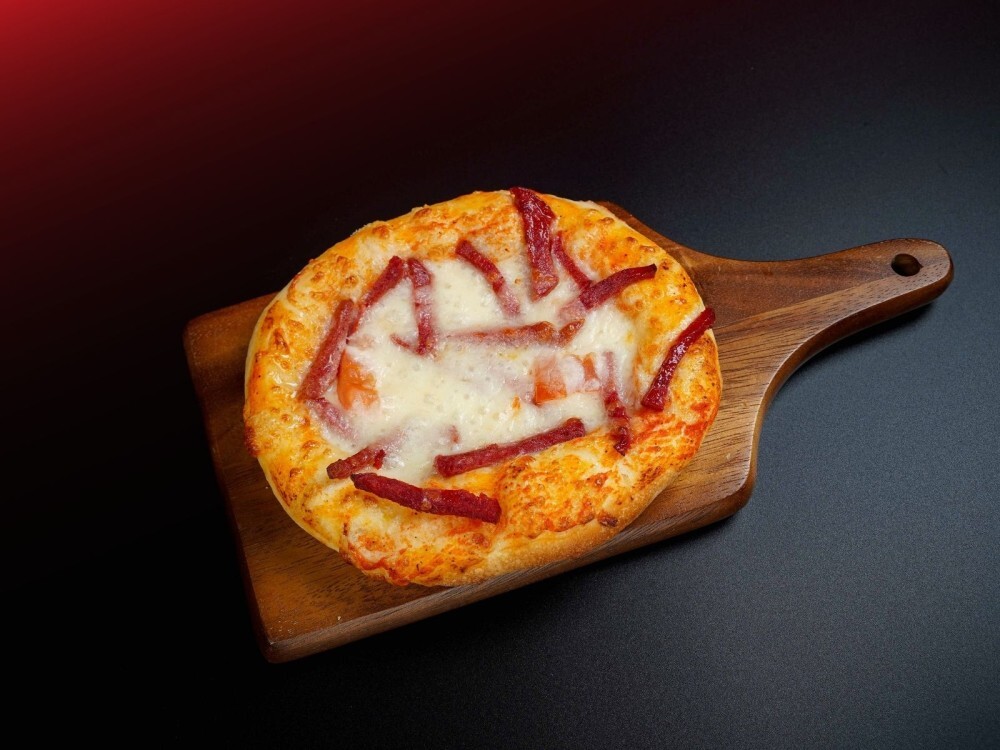 Хрустящая выпечка с начинкой из копчёной колбасы, томатов и сыра. Приготовлена с добавлением соуса, придающего насыщенный вкус.