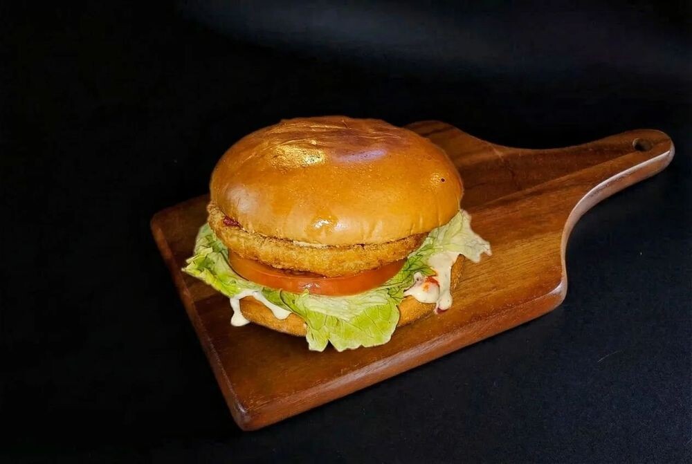 Взрыв сочности и хруста! Нежная курочка в панировке, свежие овощи и два вида соуса — яркий томатный и нежный фирменный. Классический чикенбургер, который хочется съесть за минуту.