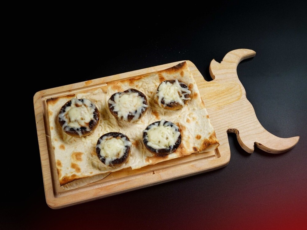 Ищете альтернативу мясному шашлыку? Попробуйте шампиньоны на мангале! Нежные грибы, обжаренные на огне, дополнены тягучим сыром сулугуни и ароматным лавашом.