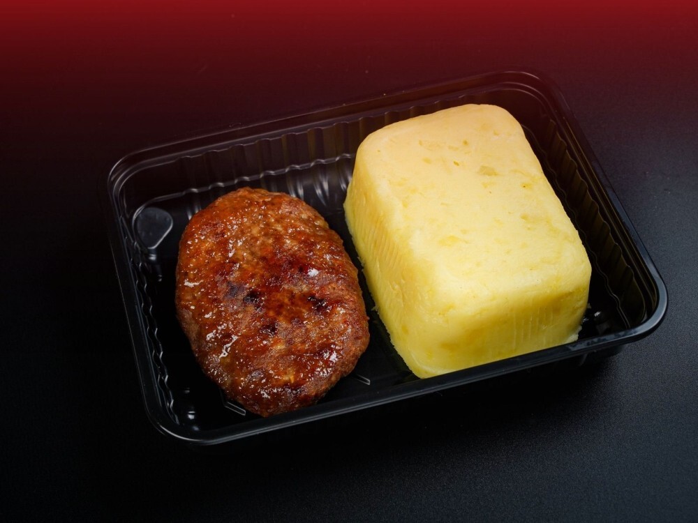 Ланч, который подарит вам чувство сытости и зарядит энергией. Нежный картофель, дополненный сливочным маслом и ароматными специями. Сочная котлета из свинины и говядины, обжаренная на оливковом масле