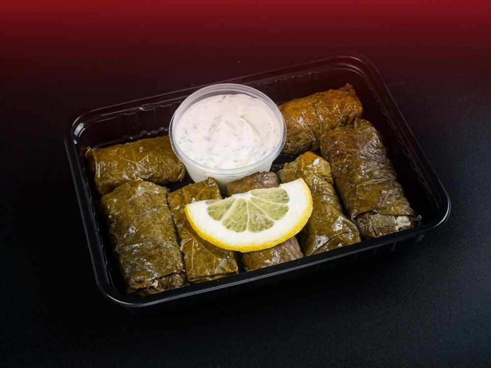 Армянская долма – сытное блюдо для ланча. Нежный фарш из говядины и курицы, завёрнутый в виноградный лист, подаётся с ароматным чесночным соусом