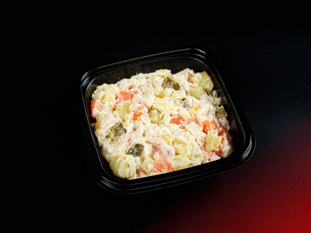 Салат «Оливье» — это классика жанра, которая не теряет своей актуальности. В его составе аппетитное куриное филе, а также зелёный горошек, картофель и морковь. Этот салат станет отличным дополнением к вашему ланчу!