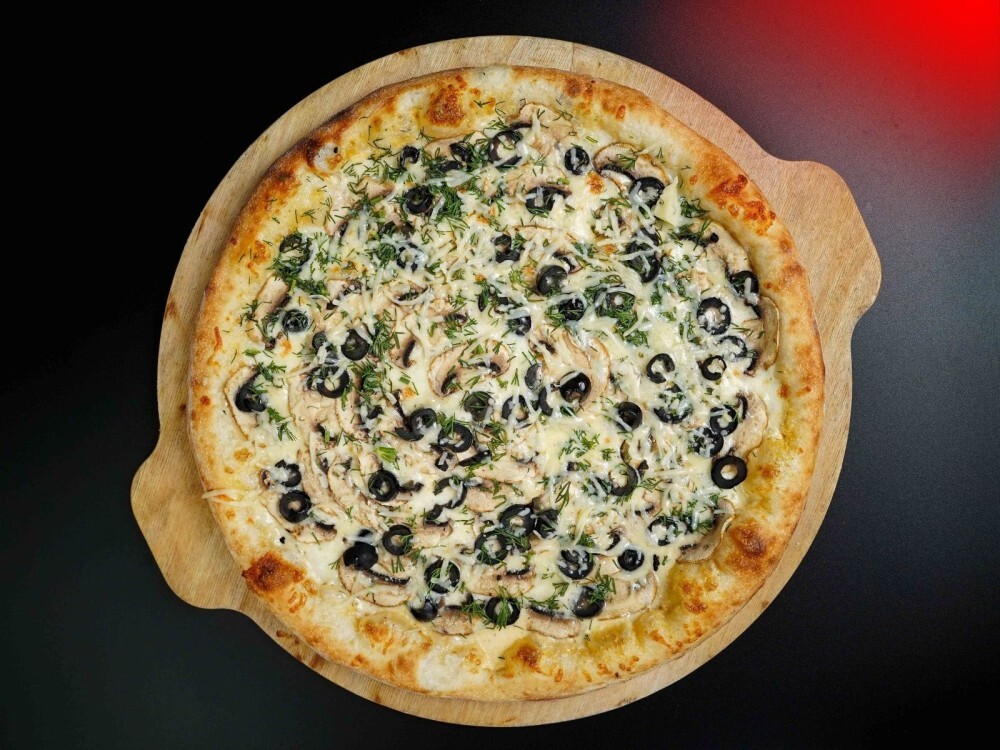 Если вы любите ароматные грибы и нежную моцареллу, вам точно понравится наша пицца! В ней — сочные шампиньоны, пикантные маслины, свежая зелень, а также сыр моцарелла и пармезан. Всё это на воздушном тесте с белым соусом.