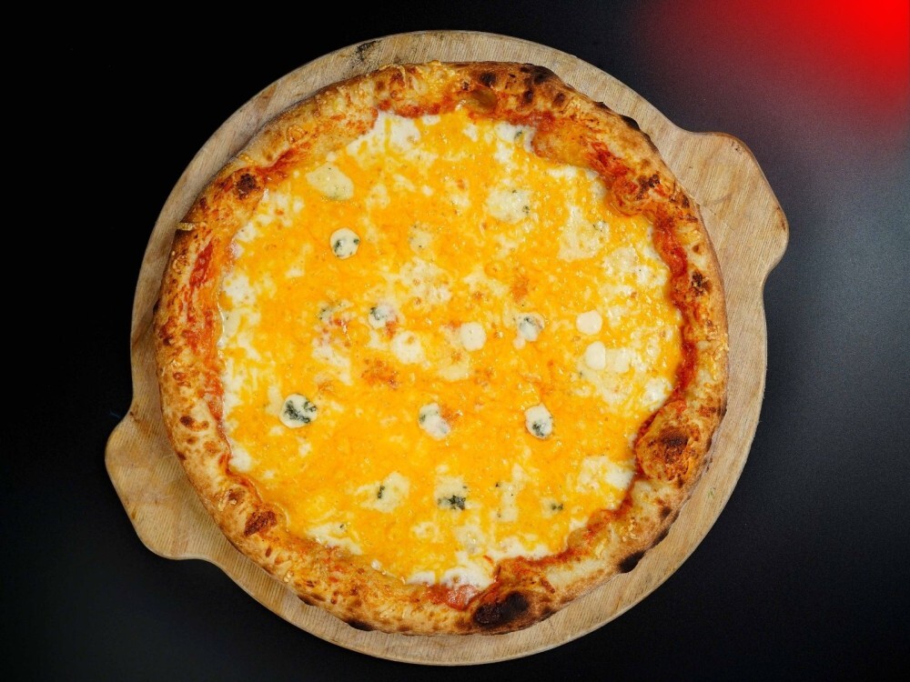 Эта пицца подарит вам яркие вкусовые ощущения. В ней сочетаются несколько видов сыра: моцарелла, чеддер, пармезан и дор-блю. А тесто и пицца-соус гармонично дополняют и подчёркивают насыщенный вкус сыров.